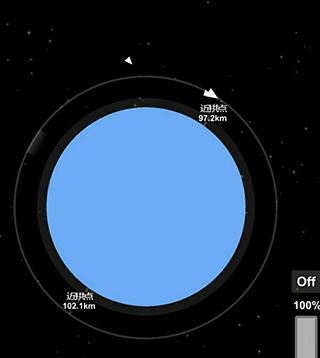 2、发射:点击喷射器可以打开发动机,点击off和on可以打开关闭燃料,滑动可以加大推力但是燃料消耗更快,跟着箭头的指示奔月把。