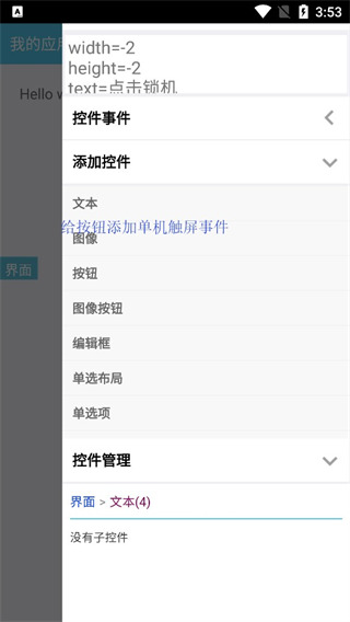 2、自由添加各种控件,包括单击、触屏、长按等,制作的软件可联网使用,功能更强大;