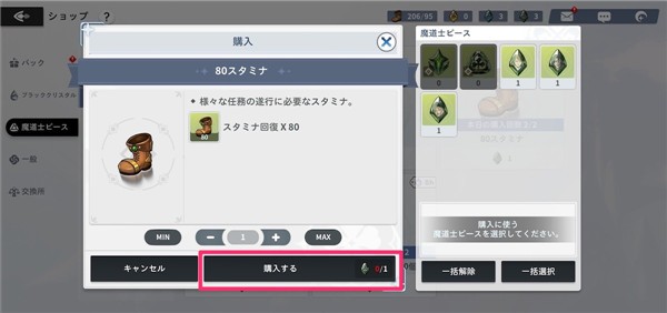 消耗【通用】商店的黑水晶可充80体力。