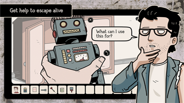 4、开始游戏后,一开始要先点击划断手腕上的绳子,接着打开左边架子上的箱子拿到“CD”。