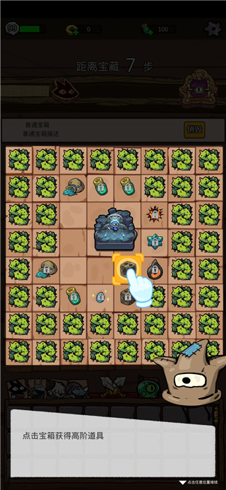1、开始游戏后,点击地图上的洞穴进行探索,每次探索都会弹出额外的道具。