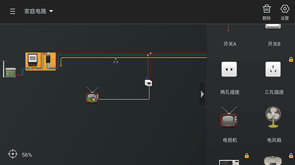 3、这里以家庭电路实验为例,右边提供了实验需要的所有物品,真实模拟现实家庭电路的操作;