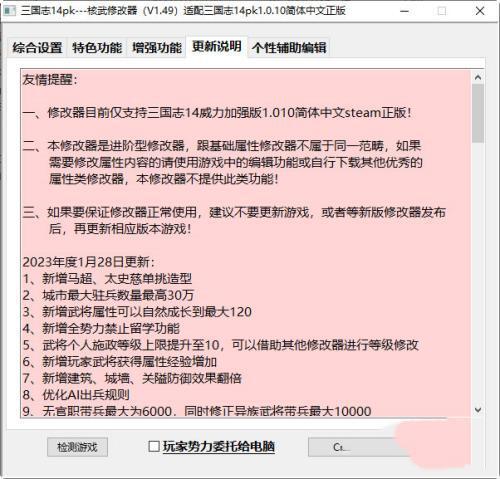 三国志14pk核武修改器最新版 1.10 绿色免费版