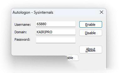 AutoLogon是一款设置系统启动自动登录工具,软件可以跳过密码自动登录。Autologon支持XP,Vista,Win7,在开机登录的过程中跳过密码输入屏幕直接进入系统。