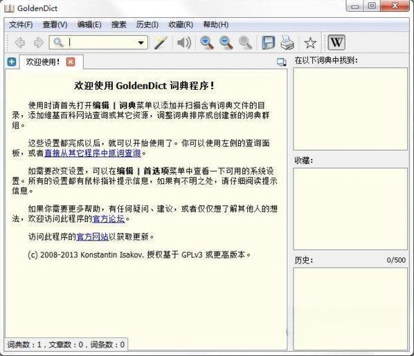 GoldenDict是一款功能强大的电子词典软件。它具有简洁清爽的用户界面和丰富的功能板块,能够高效地翻译相关语音,并支持多种词典规格,满足用户对外文的翻译需求。小编为大家介绍的是GoldenDict的稳定版本,经过专业人士修改和优化,修复了软件崩溃的问题。欢迎有需要的用户下载体验。