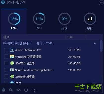 可实时监控电脑的RAM、CPU、磁盘、量度信息