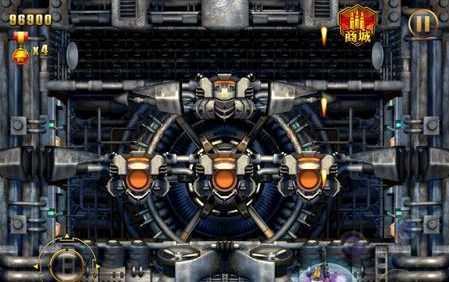 第四关的BOSS与第二关也并无太大差异,但是在难度上却大大提高,除了有“眼”的攻击之外,还会出现六个小士兵的攻击,在后期还有飞行兵的出现,游戏难度顿时提高很多。这边建议先干掉中间的“眼”,然后在子弹兵和飞行兵出现后,专门攻击其中一边,在消灭敌人后就可以对大眼睛发起进攻。