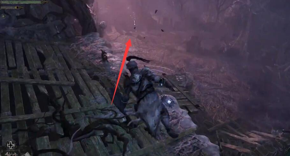 1、玩家前往废弃村庄,往里探索能发现荒坟堆,野蛮毁伤者斧子就在此处拾取;