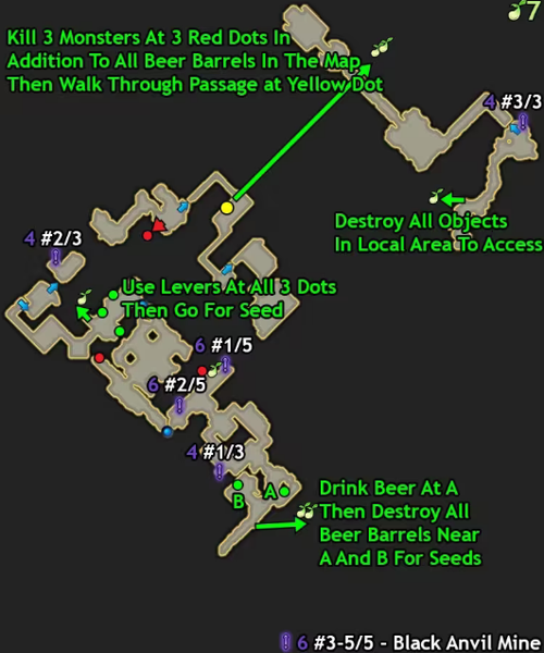 ③(左上)击杀三个红点处的怪物,并打碎地图里的全部酒桶,开放黄点处的隐藏通道